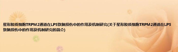星形胶质细胞TRPM2通道在LPS致脑损伤中的作用及机制研究(关于星形胶质细胞TRPM2通道在LPS致脑损伤中的作用及机制研究的简介)