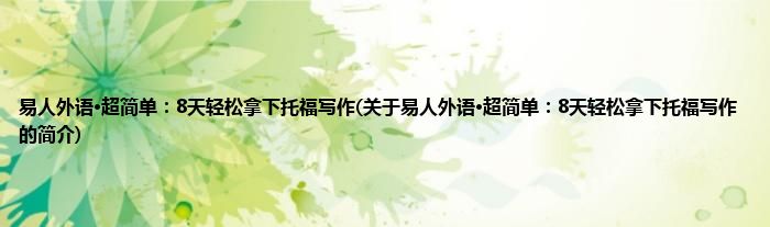 大家好,易人外语·超简单:8天轻松拿下托福写作,关于易人外语·超简单:8天轻松拿下托福写作的简介很多人还不知道,现在让我们一起来看看吧!