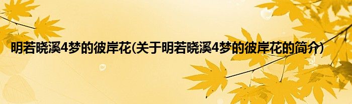 本文关于明若晓溪4梦的彼岸花的简介就讲解完毕,希望对大家有所帮助。