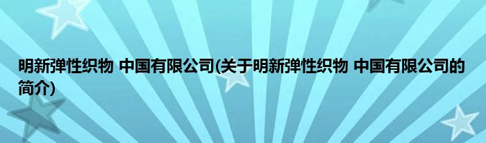 本文关于明新弹性织物 中国有限公司的简介就讲解完毕,希望对大家有所帮助。