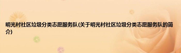 本文关于明光村社区垃圾分类志愿服务队的简介就讲解完毕,希望对大家有所帮助。