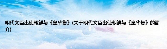 本文关于明代文臣出使朝鲜与《皇华集》的简介就讲解完毕,希望对大家有所帮助。