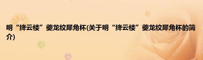 本文关于明“绛云楼”夔龙纹犀角杯的简介就讲解完毕,希望对大家有所帮助。