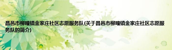 本文关于昌邑市柳疃镇金家庄社区志愿服务队的简介就讲解完毕,希望对大家有所帮助。