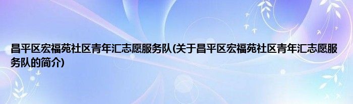 本文关于昌平区宏福苑社区青年汇志愿服务队的简介就讲解完毕,希望对大家有所帮助。