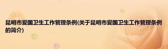 大家好,昆明市爱国卫生工作管理条例,关于昆明市爱国卫生工作管理条例的简介很多人还不知道,现在让我们一起来看看吧!