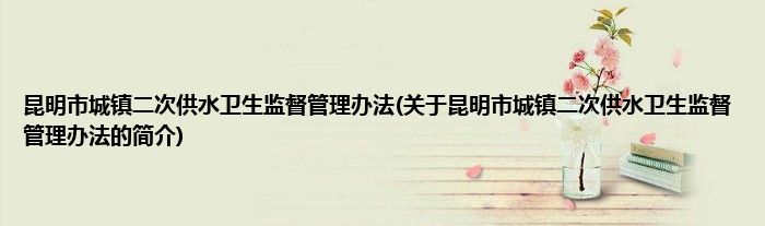 昆明市城镇二次供水卫生监督管理办法(关于昆明市城镇二次供水卫生监督管理办法的简介)