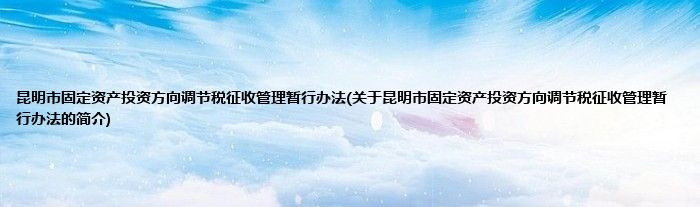 昆明市固定资产投资方向调节税征收管理暂行办法(关于昆明市固定资产投资方向调节税征收管理暂行办法的简介)