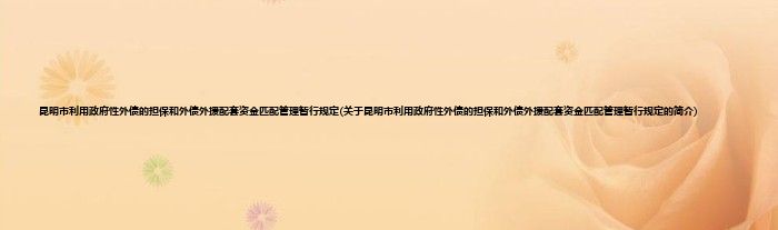 本文关于昆明市利用政府性外债的担保和外债外援配套资金匹配管理暂行规定的简介就讲解完毕,希望对大家有所帮助。