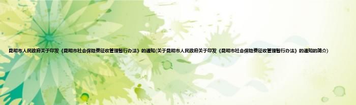 本文关于昆明市人民政府关于印发《昆明市社会保险费征收管理暂行办法》的通知的简介就讲解完毕,希望对大家有所帮助。