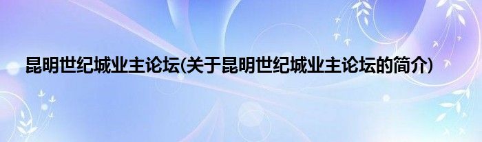 昆明世纪城业主论坛(关于昆明世纪城业主论坛的简介)