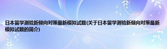 本文关于日本留学测验新倾向对策最新模拟试题的简介就讲解完毕,希望对大家有所帮助。