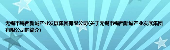 无锡市锡西新城产业发展集团有限公司(关于无锡市锡西新城产业发展集团有限公司的简介)