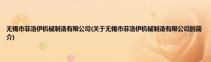 本文关于无锡市菲洛伊机械制造有限公司的简介就讲解完毕,希望对大家有所帮助。