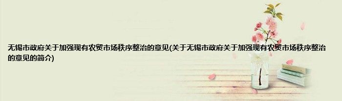 大家好,无锡市政府关于加强现有农贸市场秩序整治的意见,关于无锡市政府关于加强现有农贸市场秩序整治的意见的简介很多人还不知道,现在让我们一起来看看吧!