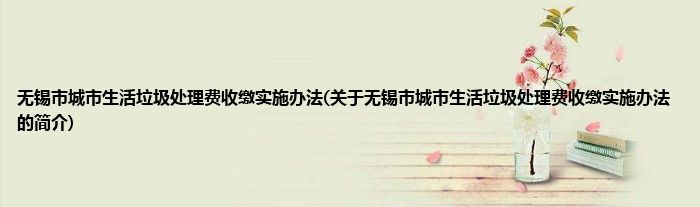 无锡市城市生活垃圾处理费收缴实施办法(关于无锡市城市生活垃圾处理费收缴实施办法的简介)