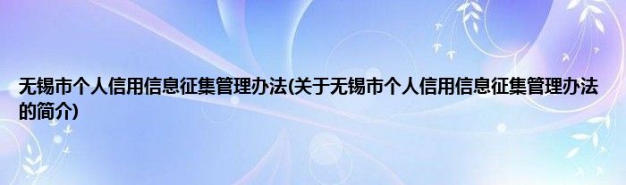 无锡市个人信用信息征集管理办法(关于无锡市个人信用信息征集管理办法的简介)