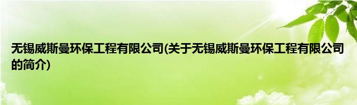 本文关于无锡威斯曼环保工程有限公司的简介就讲解完毕,希望对大家有所帮助。