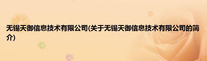 本文关于无锡天御信息技术有限公司的简介就讲解完毕,希望对大家有所帮助。