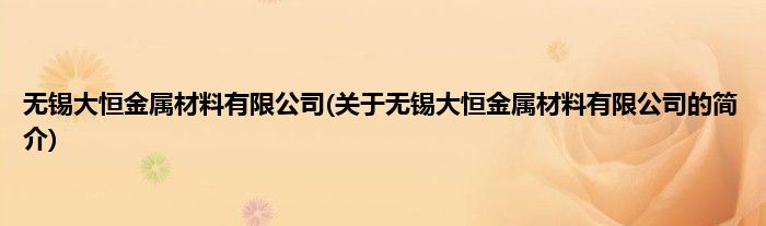 本文关于无锡大恒金属材料有限公司的简介就讲解完毕,希望对大家有所帮助。
