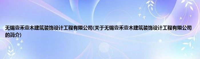 大家好,无锡壹禾壹木建筑装饰设计工程有限公司,关于无锡壹禾壹木建筑装饰设计工程有限公司的简介很多人还不知道,现在让我们一起来看看吧!