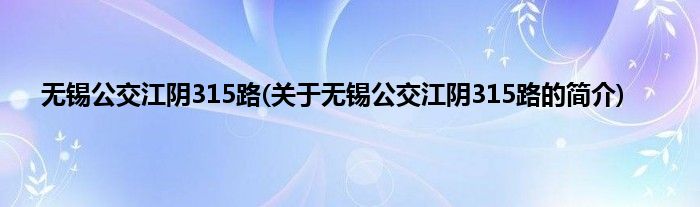 本文关于无锡公交江阴315路的简介就讲解完毕,希望对大家有所帮助。