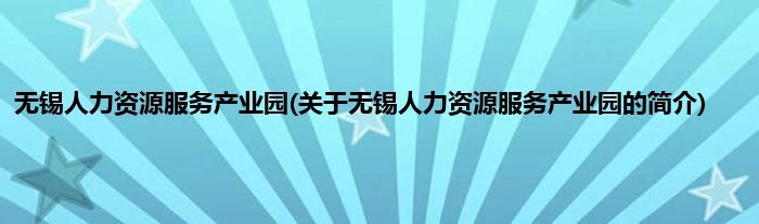 无锡人力资源服务产业园(关于无锡人力资源服务产业园的简介)