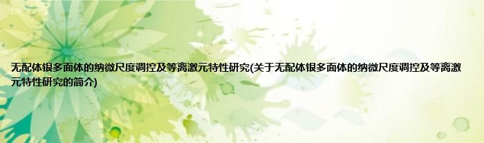 本文关于无配体银多面体的纳微尺度调控及等离激元特性研究的简介就讲解完毕,希望对大家有所帮助。