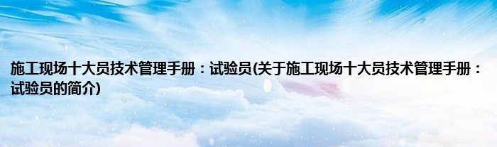 本文关于施工现场十大员技术管理手册:试验员的简介就讲解完毕,希望对大家有所帮助。