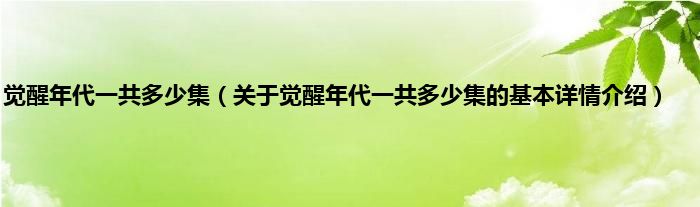 本文关于觉醒年代一共多少集的基本详情介绍就讲解完毕,希望对大家有所帮助。