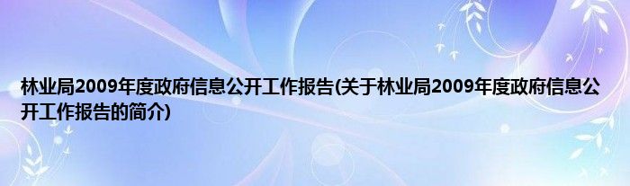 本文关于林业局2009年度政府信息公开工作报告的简介就讲解完毕,希望对大家有所帮助。