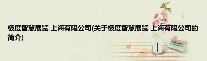 本文关于极度智慧展览 上海有限公司的简介就讲解完毕,希望对大家有所帮助。