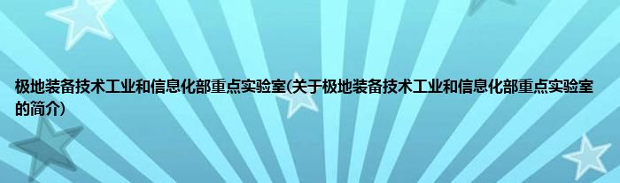 大家好,极地装备技术工业和信息化部重点实验室,关于极地装备技术工业和信息化部重点实验室的简介很多人还不知道,现在让我们一起来看看吧!