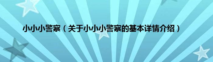 本文关于小小小警察的基本详情介绍就讲解完毕,希望对大家有所帮助。