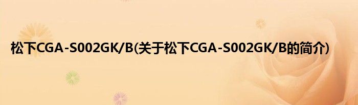 松下CGA-S002GK/B(关于松下CGA-S002GK/B的简介)