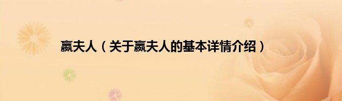 大家好我是小蝌蚪,嬴夫人,关于嬴夫人的基本详情介绍很多人还不知道,那么现在让我们一起来看看吧!