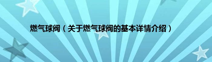 本文关于燃气球阀的基本详情介绍就讲解完毕,希望对大家有所帮助。