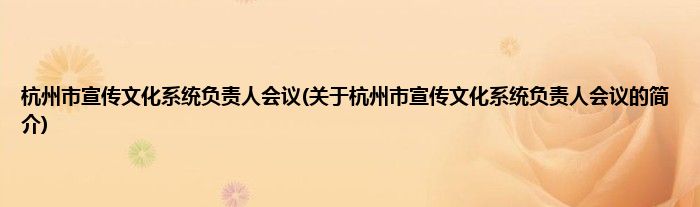 大家好,杭州市宣传文化系统负责人会议,关于杭州市宣传文化系统负责人会议的简介很多人还不知道,现在让我们一起来看看吧!