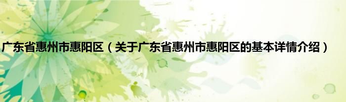 本文关于广东省惠州市惠阳区的基本详情介绍就讲解完毕,希望对大家有所帮助。