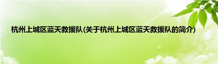 本文关于杭州上城区蓝天救援队的简介就讲解完毕,希望对大家有所帮助。
