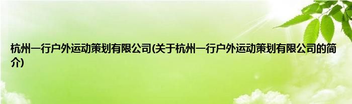 本文关于杭州一行户外运动策划有限公司的简介就讲解完毕,希望对大家有所帮助。