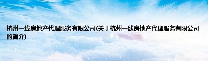 大家好,杭州一线房地产代理服务有限公司,关于杭州一线房地产代理服务有限公司的简介很多人还不知道,现在让我们一起来看看吧!