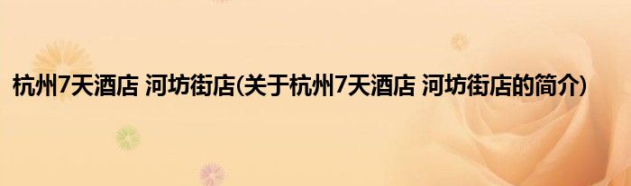 本文关于杭州7天酒店 河坊街店的简介就讲解完毕,希望对大家有所帮助。