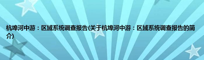 本文关于杭埠河中游:区域系统调查报告的简介就讲解完毕,希望对大家有所帮助。