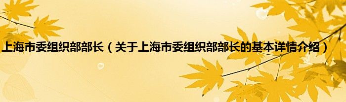 本文关于上海市委组织部部长的基本详情介绍就讲解完毕,希望对大家有所帮助。