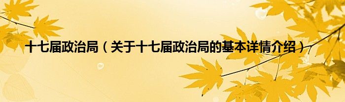 本文关于十七届政治局的基本详情介绍就讲解完毕,希望对大家有所帮助。