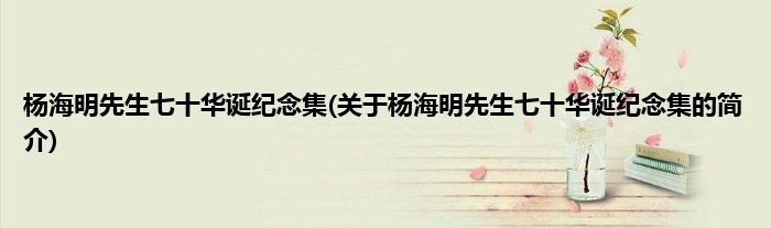 大家好,杨海明先生七十华诞纪念集,关于杨海明先生七十华诞纪念集的简介很多人还不知道,现在让我们一起来看看吧!
