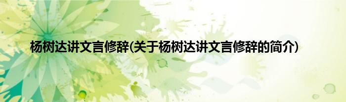 本文关于杨树达讲文言修辞的简介就讲解完毕,希望对大家有所帮助。