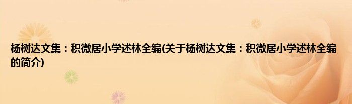 大家好,杨树达文集:积微居小学述林全编,关于杨树达文集:积微居小学述林全编的简介很多人还不知道,现在让我们一起来看看吧!
