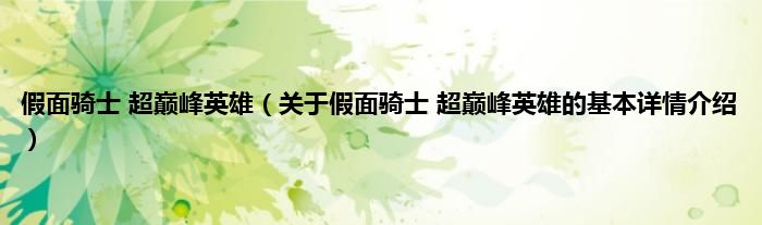 假面骑士 超巅峰英雄(关于假面骑士 超巅峰英雄的基本详情介绍)